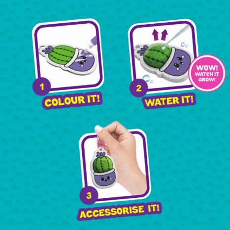 | Colour, create & watch them come to life! Add water and see your design magically grow. Add a keychain to turn your masterpiece into the ultimate charm for your backpack or more! |