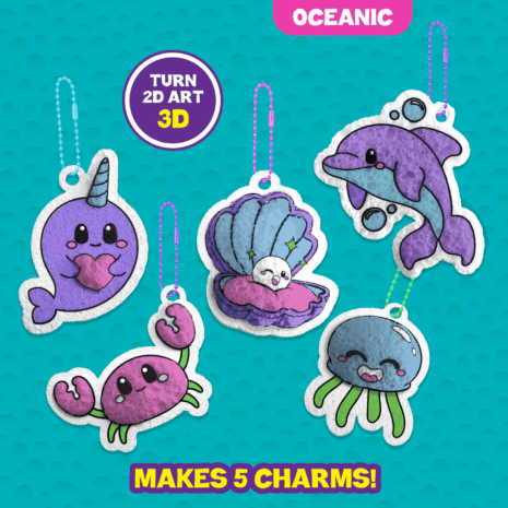 Colour, create & watch them come to life! Add water and see your design magically grow. Add a keychain to turn your masterpiece into the ultimate charm for your backpack or more!