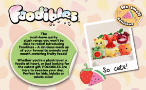 - FOODIBLES: A delicious mash up of your favourite animals and mouth-watering fruity foods! This Foodibles bundle includes the adorable Strawberry Elephant and cool Watermelon Frog. Each character is bursting with quirky charm and unique flair- there’s a Foodibles to match everyone’s personality!