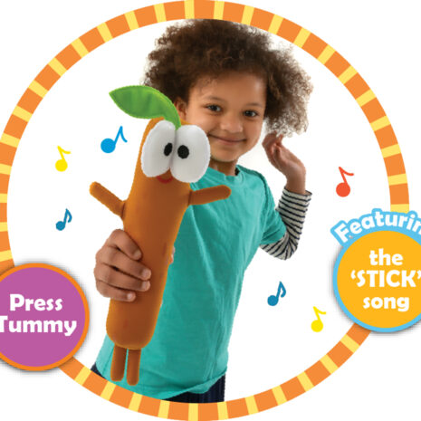 • Simply press Stick’s tummy to hear the famous and very catchy Stick song…stick, stick, stick, stick… you know the rest